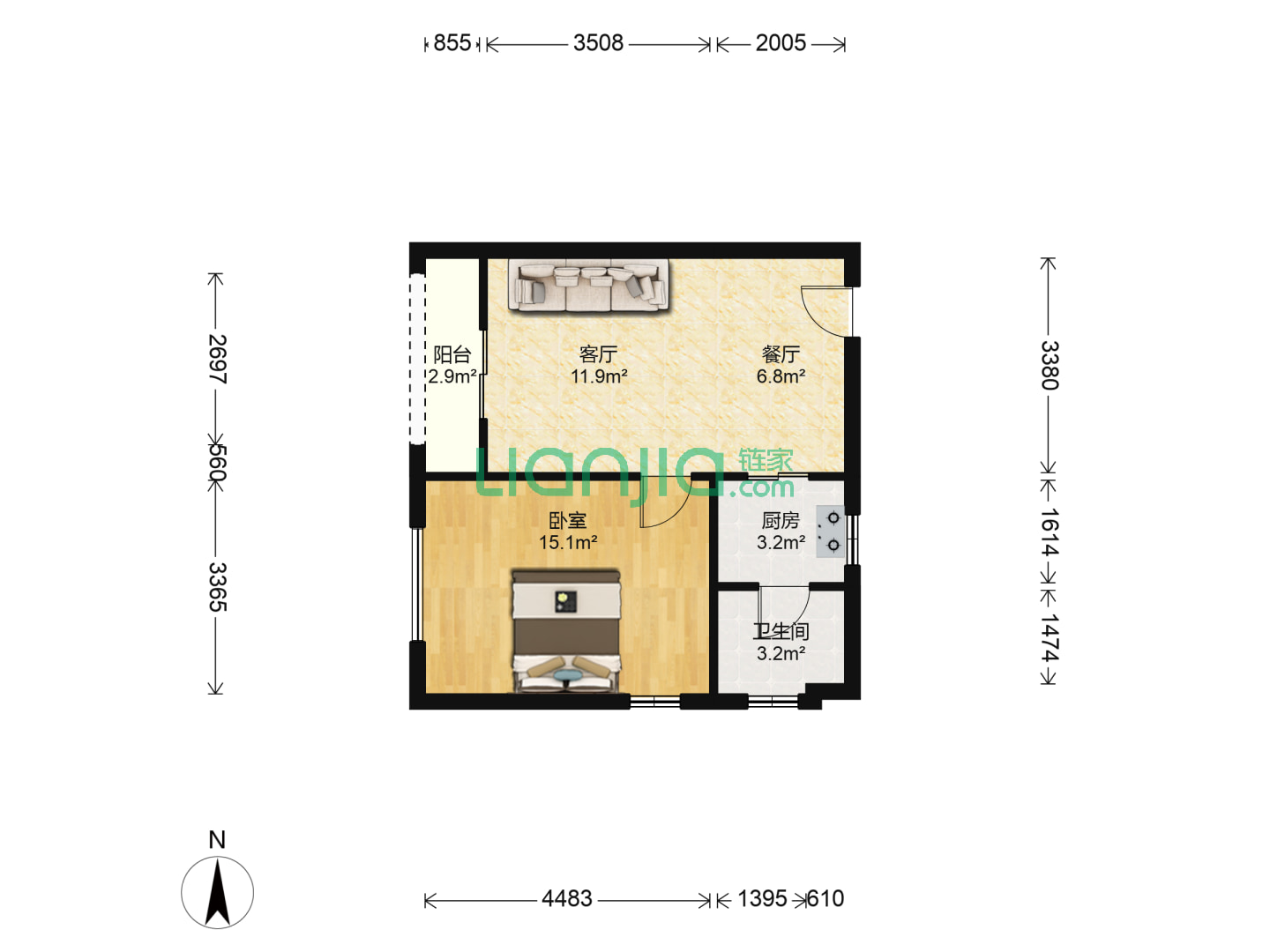 1室1厅1卫 36㎡